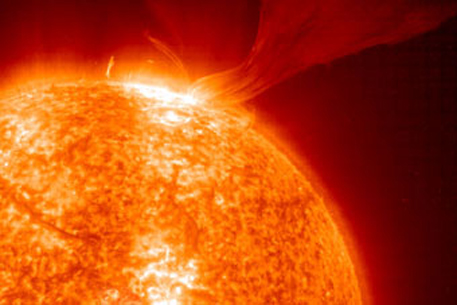 Космический зонд SOHO зафиксировал произошедший в субботу мощный выброс солнечного вещества в сторону Земли, сообщает CNews. В межпланетное пространство были выброшено миллионы тонн газа. Протуберанец, поднявшийся над поверхностью Солнца, достигал в высоту одного миллиона километров. Когда солнечная буря достигнет нашей планеты, ожидаются дестабилизация магнитосферы Земли и негативное воздействие на живые организмы и электрические приборы.