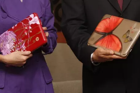 Новый девайс под названием HP Vivienne Tam Digital Clutch разрабатывался при непосредственном участии всемирно известного американского модельера гонконгского происхождения Вивьен Там (Vivienne Tam). Очевидно, вдохновившись старинной национальной легендой "Влюбленные бабочки", которую зачастую называют китайским вариантом шекспировской "Poмeo и Джyльeтта", дизайнер украсила устройство порхающими бабочками на золотом фоне. Также имеется модель, корпус которой выполнен в красной цветовой гамме.