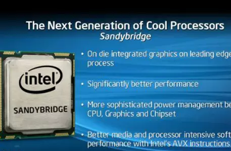 По словам исполнительного вице-президента подразделения Intel Architecture Group Дэвида Перлмуттера (David Perlmutter), Sandy Bridge станут первыми процессорами корпорации, поддерживающими технологию AVX (Advanced Vector Extension). Последняя применяется для достижения более высокого уровня производительности в таких задачах, как финансовый анализ, создание и обработка мультимедийных данных, разведка природных ресурсов и приложения с высокой интенсивностью вычислений.