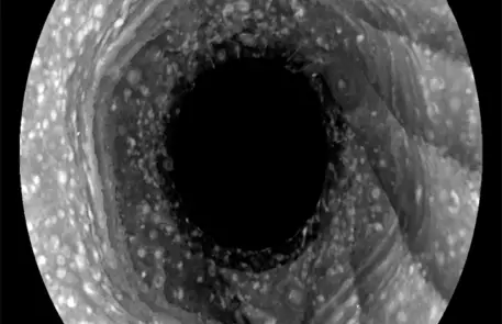 Сотрудник научной группы "Кассини" Кунио Саянаги (Kunio Sayanagi) полагает, что продолжительность жизни этого шестиугольника делает его чем-то особенным, так как похожие атмосферные явления на Земле длятся всего несколько недель. По словам Саянаги, эту загадку можно поставить наряду с необычными погодными условиями, которые наблюдаются на Юпитере уже столетия и приводят к образованию Большого красного пятна. С помощью фотокамеры с более высоким разрешением было получено 55 снимков. Из них собрали мозаичное изображение. Ученые пытаются разобраться откуда берется энергия, которая поддерживает огромное образование.