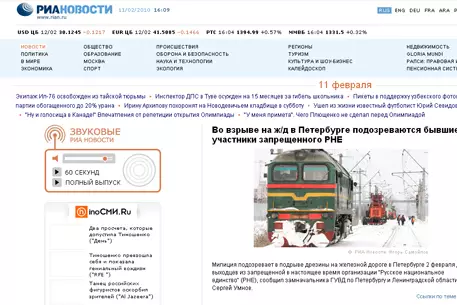Сайт РИА Новости rian.ru занял первое место по посещаемости среди интернет-СМИ, сообщает РИА Новости. По данным проекта RUметрика, в декабре прошлого года ресурс посетили 21,7 миллиона пользователей, что на 128 процентов превышает показатель прошлого года. РБК (rbc.ru) потерял позицию лидера, заняв второе место с приростом посещаемости в девять процентов. В течение прошлого года посещаемость ведущих информационных ресурсов русскоязычного интернета увеличивалась. Аудитория новостных сайтов выросла на 31 процент (6,5 миллиона посетителей в сутки). Количество информационных ресурсов выросло на 19 процентов. Единственным ресурсом с отрицательной динамикой оказался REGNUM.ru. Его популярность снизилась на семь процентов. Самыми популярными информационными поводами 2009 года стали финансовый кризис, эпидемия свиного гриппа, смерть Майкла Джексона и трагедия в пермском ночном клубе "Хромая лошадь".