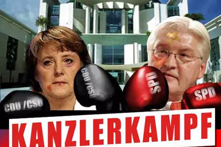 Немецкая компания Game Group GmbH объявила о создании компьютерной игры "Меркель против Штайнмайера. Борьба за канцлерский пост", в которой за пост канцлера Германии поборются кандидаты, сообщает РИА Новости. Политиков изобразили в виде боксеров. Принять участие в бою можно бесплатно на одном из игровых интернет-порталов.