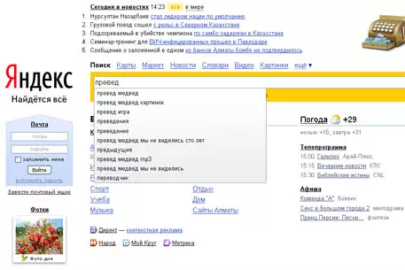 В десятку самых популярных запросов к поисковику "Яндекс" входят слова "в контакте", "одноклассники" и "mail.ru". Около семи процентов запросов содержат название того или иного города. В рамках двух-трех сессий пользователь задает в среднем шесть-семь запросов.
