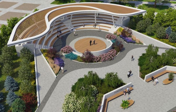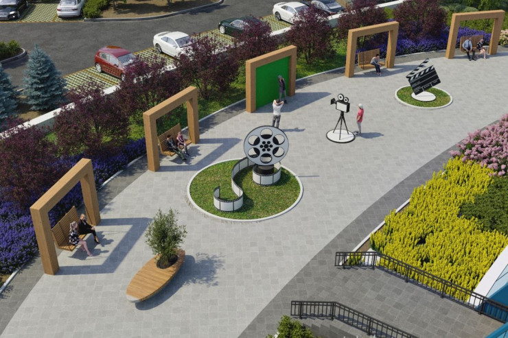 Благоустройство ждет и прилегающую территорию возле дворца "Шабыт". На месте пустой брусчатки появится аллея с деревьями, лавочками и уличный амфитеатр. Студенты, а также жители близлежащих районов смогут там гулять и отдыхать.