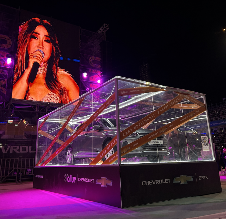 Так, 30 июля на высокогорном катке "Медео" во время музыкального фестиваля Chevrolet разыграл новый Chevrolet Onix. Всего в данном розыгрыше приняли участие около 1 839 человек. Победительницей конкурса стала мама троих детей, 59-летняя Кенжекыз Мырзалиева.