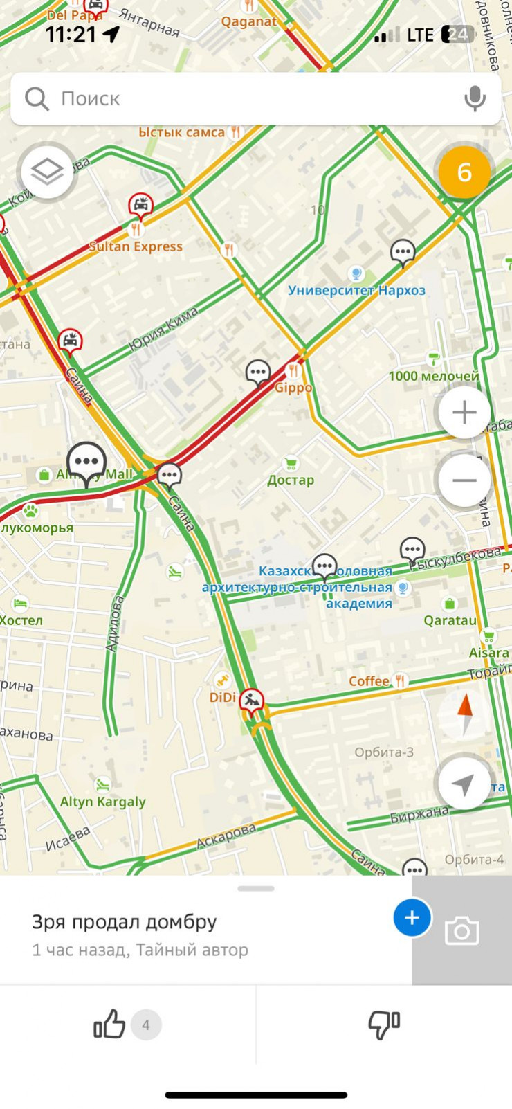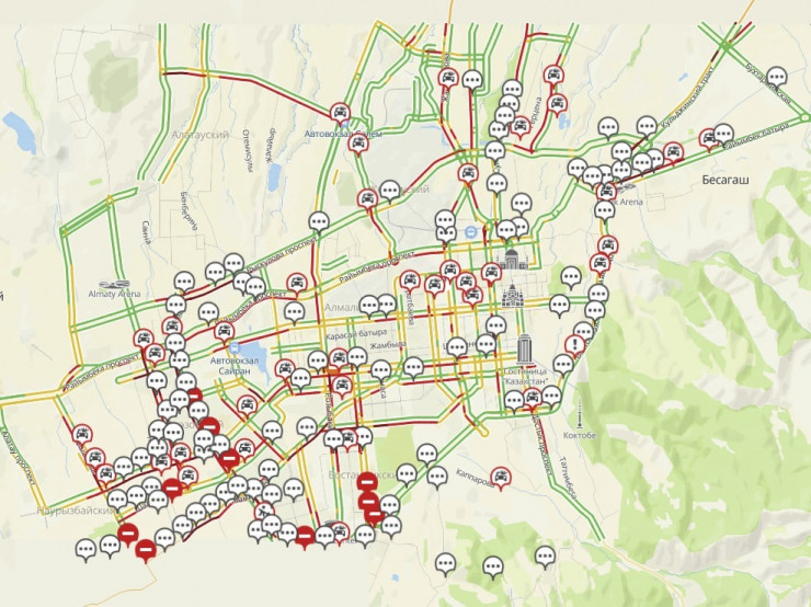 Отметим, что на 12:30 пробки в Алматы оцениваются в четыре балла.