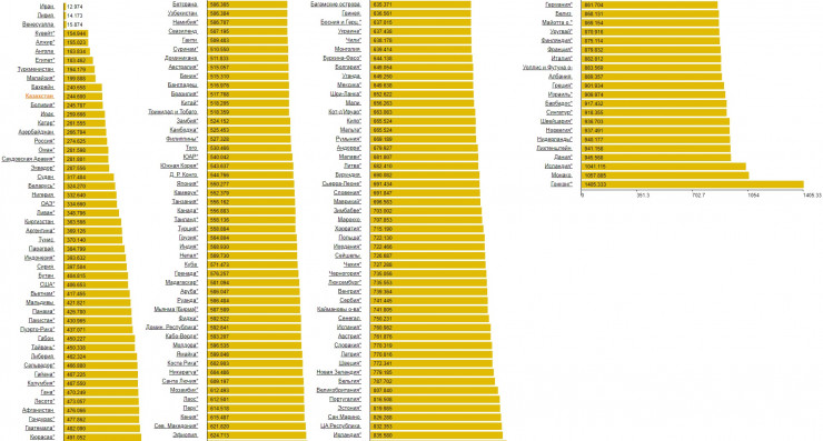Меньше всего литр данного топлива можно купить в Иране (13 тенге), Ливии (14 тенге) и Венесуэле (16 тенге). Затем в рейтинге идет резкий скачок: Кувейт и Алжир продают бензин примерно по 155 тенге за литр.