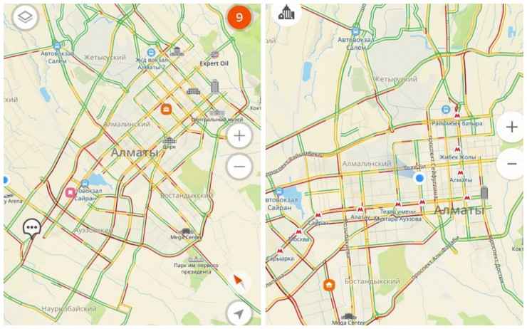 По данным гис-сервиса "2ГИС", в Алматы с утра наблюдаются пробки в 9-10 баллов. Большинство магистральных улиц города имеют яркий красный цвет.