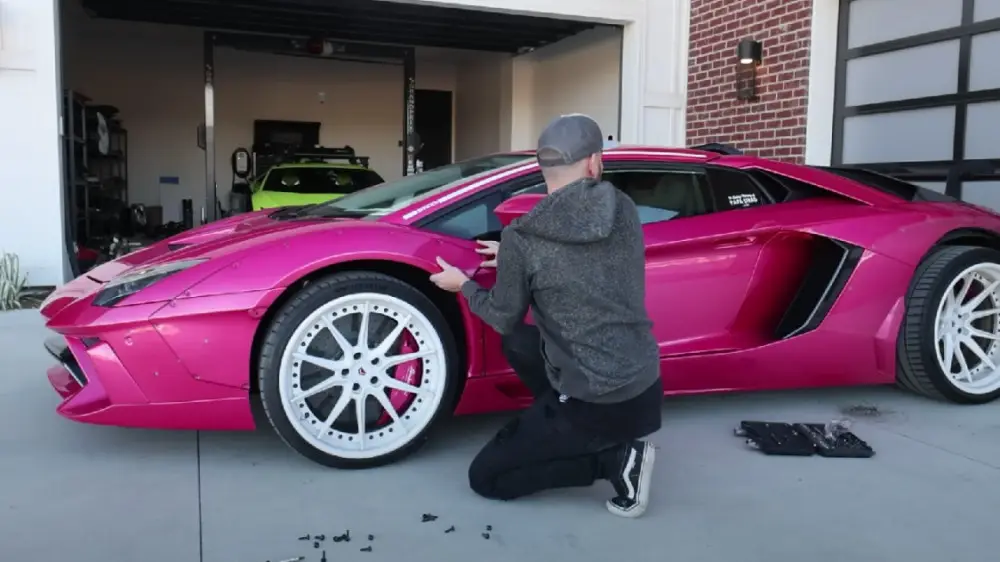 Для кастомизации этого автомобиля блогер заказал обвесы за 20 тысяч долларов. Он самостоятельно вырезал крылья для установки обвеса вручную. Также тюнер покрасил автомобиль в ярко-розовый цвет, который изначально был белым.