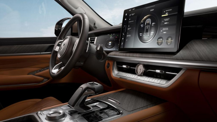 В салоне TANK 500 одинаково комфортно как водителю, так и пассажирам. Каждому полагается климат-контроль (в TANK 500 он трехзонный!), беспроводная зарядка, управление шторкой люка с тачскрина плюс несколько режимов массажа.