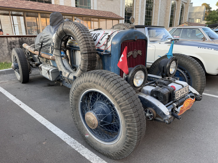 Участник гонки из Люксембурга Макс Буэр путешествует на своем Bentley 1934 года. Эта модель имеет необычный "хвост лодки" и была произведена вскоре после того, как компания Bentley обанкротилась и была куплена Rolls-Royce. Многие детали этого Bentley схожи с Rolls-Royce того времени.