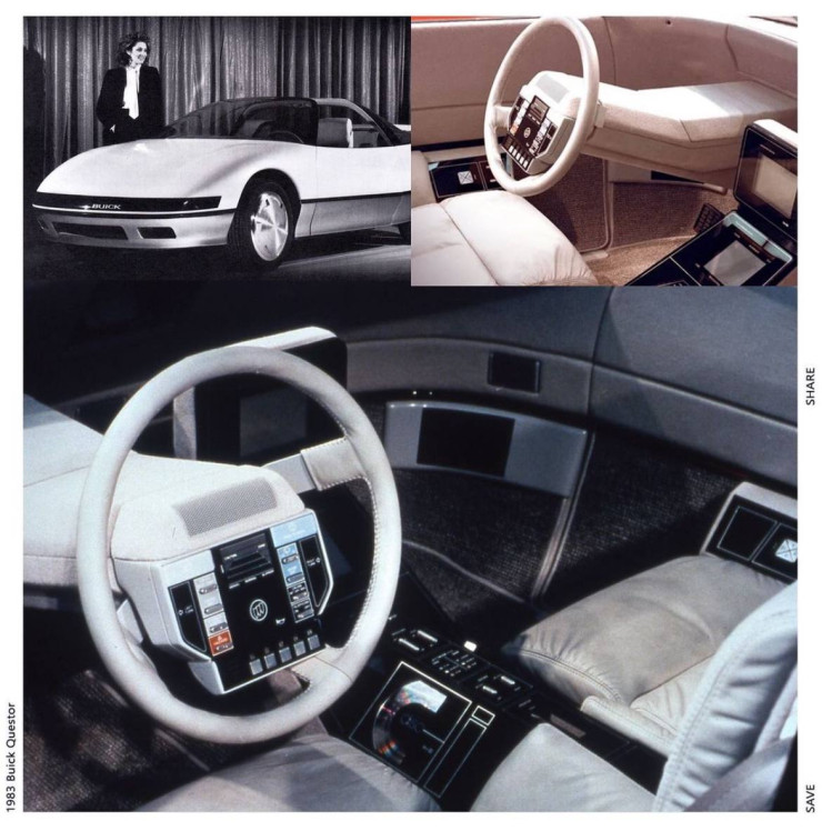Белый концепт Buick Questor с рулем, который больше напоминает сенсорную панель умного дома. Лаконичность и чистота линий рулевой панели - эталон футуристического минимализма 80-х.