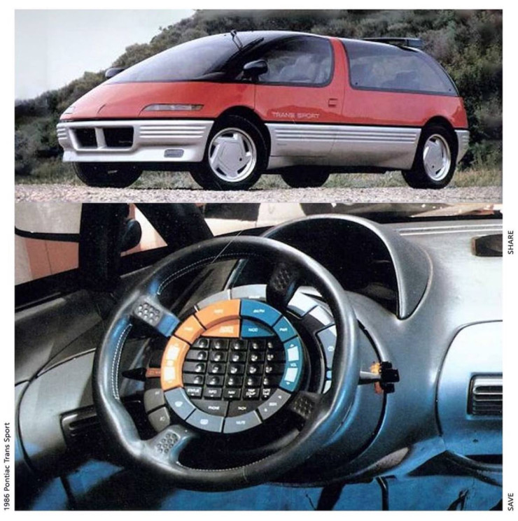 Концепт Pontiac Trans Sport с рулем, который напоминает командный пульт звездолета. Кнопки на рулевом колесе выглядят, словно приготовлены для управления космическим кораблем, а не автомобилем.