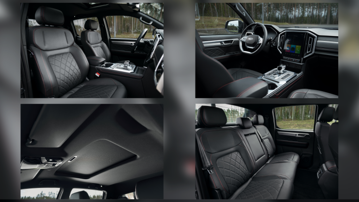 Для безопасности водителя и пассажиров предусмотрены системы активной и пассивной безопасности, такие как помощь при подъеме и спуске, экстренного торможения, контроля тяги, распределения тормозных усилий, а также камеры кругового обзора.