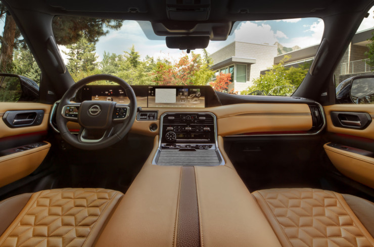 Внутри салона изменений меньше: центральная консоль оснащена кнопочным пультом управления климатом и шайбой переключения внедорожных режимов. Диагональ экрана мультимедиа-системы в базовой комплектации составляет 12,3 дюйма, а в трех верхних комплектациях доступен экран на 14,3 дюйма. Аудиосистема Klipsch в топовой версии оснащена 12 динамиками вместо 14, как в Infiniti, а проекционный дисплей доступен только за дополнительную плату.