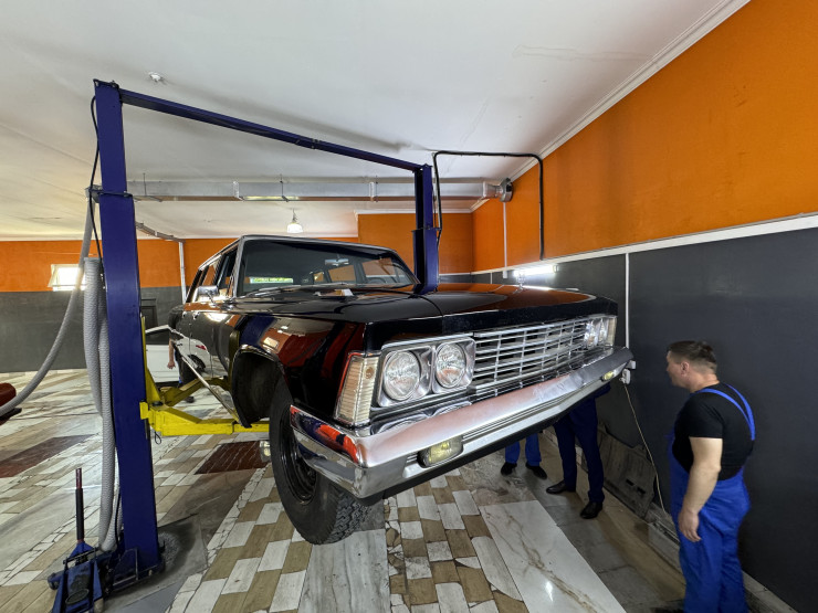 Реставрацией уникального автомобиля занимается GT oil service в Алматы, который провел работы по восстановлению ходовой части, замене технических жидкостей, ремонту двигателя, реставрации салона, электрики и кузова авто.