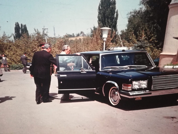 "Это машина с историей. В свое время под номером 99, когда Динмухамед Ахмедович Кунаев стал членом Политбюро, ему по статусу уже полагалось иметь такую машину. И когда его друг Леонид Ильич Брежнев узнал, что у Кунаева еще нет машины, он подарил свою. Это можно назвать подарком Брежнева", - рассказал Қажыақбар.
