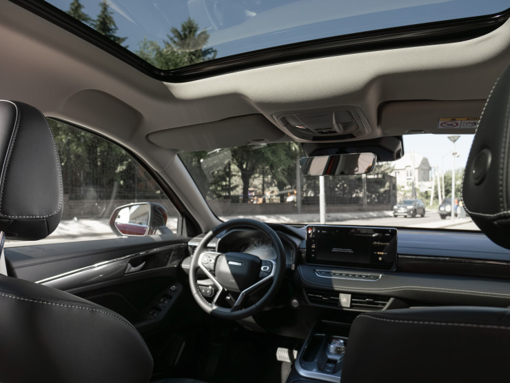 Для комфорта Jolion предлагает проекционный дисплей, беспроводную зарядку, Apple carplay и Android auto (Android обновленный), панорамную крышу. Регулировка руля по вылету и управление системами автомобиля, такими как круиз-контроль, аудиосистема и бортовой компьютер, организованы максимально удобно с помощью кнопок на руле.
