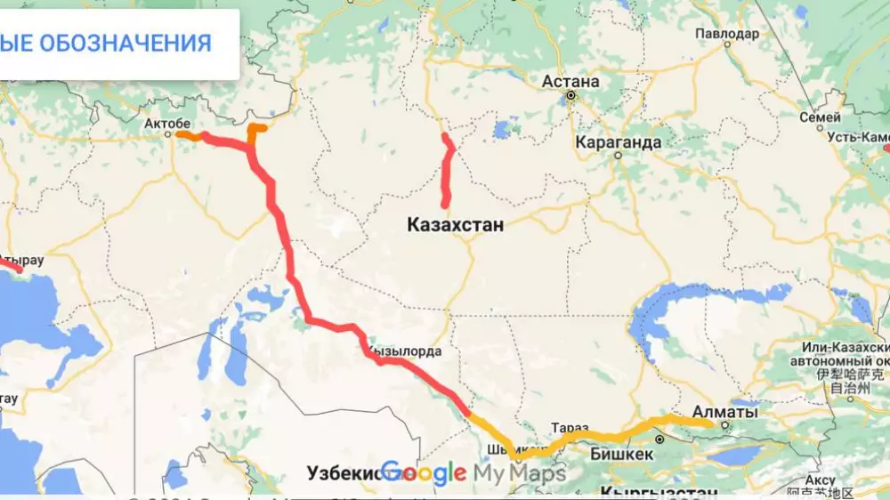 1. Самара - Шымкент, километры 2055-2257, участок: граница Кызылординской области - город Шымкент, 202 километра.