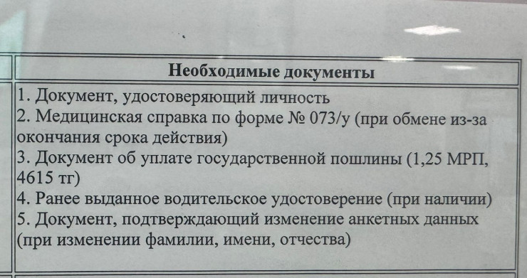 Первым делом астанчанка направилась в спецЦОН, где ей предоставили перечень необходимых документов, которые нужны, чтобы перевыпустить водительское удостоверение.