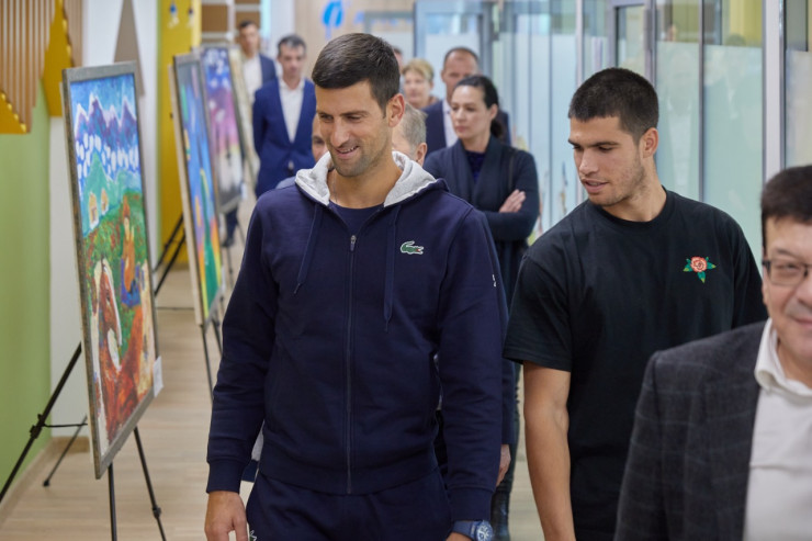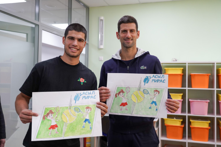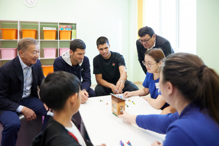 Президент федерации тенниса и учредитель Фонда Булат Утемуратов показал центр первой ракетке мира испанцу Карлосу Алькарасу, 21-кратному чемпиону турниров "Большого Шлема" сербу Новаку Джоковичу, первой ракетке Канады Феликсу Оже-Альяссиму и четвёртой ракетке мира Даниилу Медведеву.