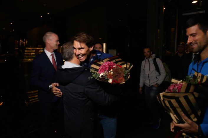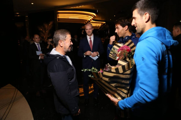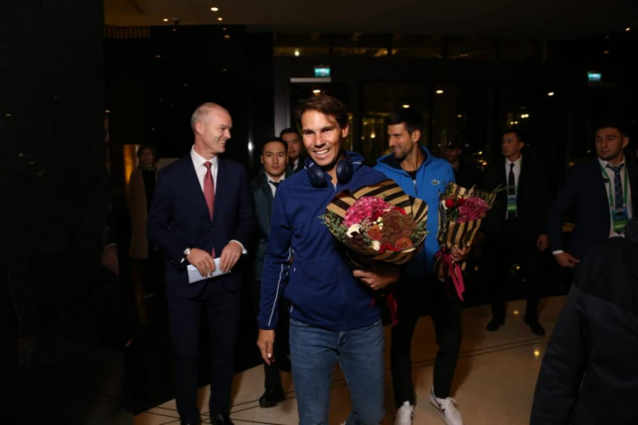 Первая и вторая ракетки мира серб Новак Джокович и испанец Рафаэль Надаль со своими командами приземлились в международном аэропорту Нур-Султана, передает Тengrinews.kz со ссылкой на Vesti.kz. Именитых гостей встречал президент Федерации тенниса Казахстана Булат Утемуратов.