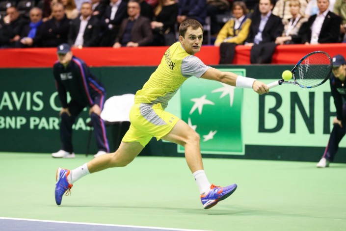 Ранее Александр Недовесов проиграл в трех сетах первой ракетке мира Новаку Джоковичу. Таким образом, после первого дня счет в матчевой встрече равный - 1:1.