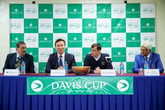 В своем приветственном слове Диас Доскараев сказал, что казахстанская сторона рада предоставить возможность командам Индии и Пакистана сыграть отборочные матчи зоны Азии и Океании на нашей земле. Также он отметил уровень индийских игроков, среди которых были Сумит Нагал и Леандер Паес, которые уже приезжали в Казахстан и играли на челленджерах.