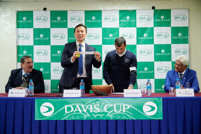 В церемонии жеребьевки приняли участие команды и капитаны каждой из стран, главный судья турнира Роберто Раниери, а также вице-президент Федерации тенниса Казахстана Диас Доскараев.