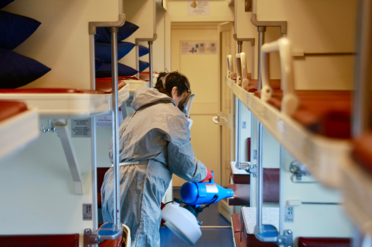 Кроме того, в компании напомнили, что после нанесения растворов все помещения закрываются на 6-8 часов в соответствии с инструкциями по применению. Далее поезд проходит клининговую чистку и готовится в отправку в рейс.