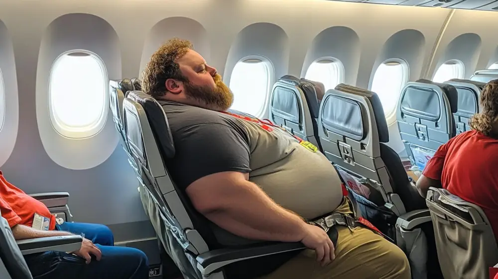 Пассажир не влез в сиденье самолета: в сети разгорелся жаркий спор Изображение сгенерировано при помощи нейросети Midjourney