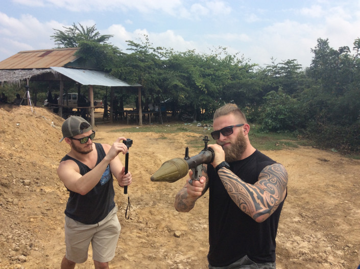 После гражданской войны 70-х годов здесь сохранилось большое количество военных баз. Сейчас страна восстанавливает древние города и активно развивает туризм. Предприимчивые камбоджийцы решили переоборудовать военные базы под новые цели и теперь в страну приглашают туристов посетить местные стрельбища.