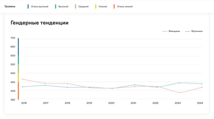 В гендерном разрезе мужчины по-прежнему превосходят женщин в большинстве стран, хотя разрыв постепенно сокращается. Исключение составляет Африка, где женщины демонстрируют лучшие результаты.
