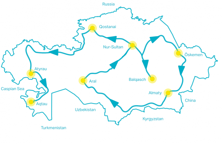 Несколько дней назад до начала поездки, глядя на карту Казахстана, я удивился его размерам и задумался, как люди вообще передвигаются по такой огромной территории. Меня поразило и то, что вся железнодорожная сеть составляет всего 16 000 километров, что намного меньше, чем в большинстве европейских стран. Хотя при этом площадь Казахстана больше, чем вся Центральная Европа. Чтобы узнать и понять подробней, я на несколько недель заперся в казахстанских вагонах.