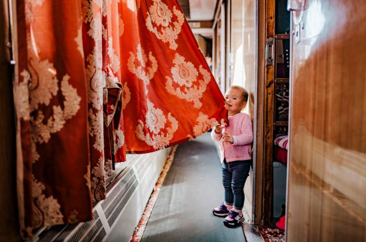 Часто люди путешествуют всей семьей с детьми. Некоторые из них даже играют в футбол в коридоре вагонов, а другие просто исследуют, открывают и трогают все, что возможно.