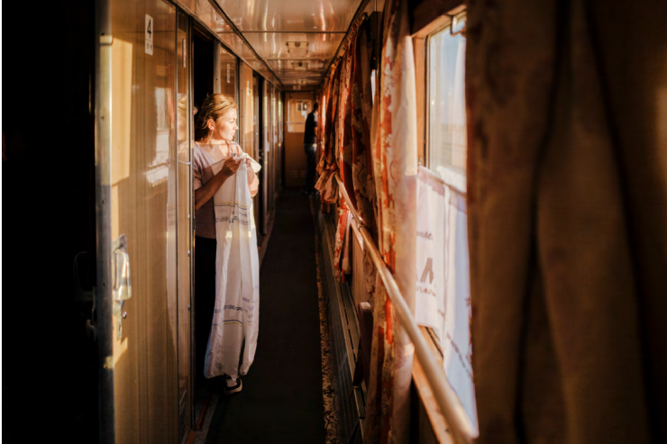 Утром, после пробуждения, постельное белье аккуратно складывается и передается проводникам поезда. Это своего рода ритуал, чтобы отдать дань уважения труду.