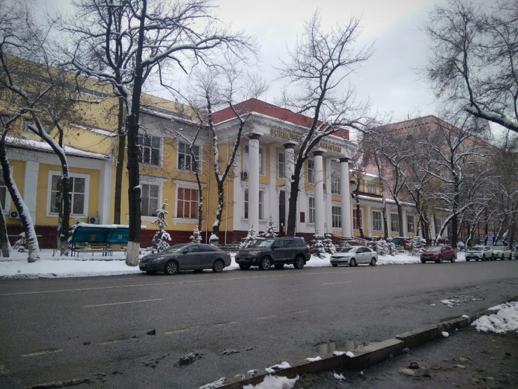 От дома ткани до верненской женской гимназии, расположенной по адресу: Гоголя, 14/51, пешком идти минут пять-семь. Дом ткани стоит на Жибек Жолы, поэтому нужно пройти по Жибек жолы до улицы Пушкина и на перекрестке по Пушкина подняться вверх до Гоголя, пойти буквально один квартал. Ориентиром будет дом ученых - большой желтый дом сталинской архитектуры, но про это расскажу в следующий раз. Свернув по улице Пушкина вверх, вы обратите внимание на Детский театр кукол, когда-то здесь находился дом общественных собраний Верного. И выше театра, слева, будет женская гимназия.