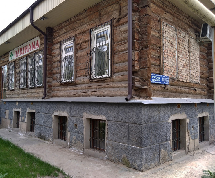 Это же здание было построено 1910 году - подвал кирпичный, дом деревянный, сложенный из бревен. Когда-то здесь жил казачий атаман. Улица в целом была казачьей. Затем дом отошел во владение Чумбалова, а потом здесь поселился священник Софийского собора. В годы войны в подвале дома было общежитие аптечных работников.