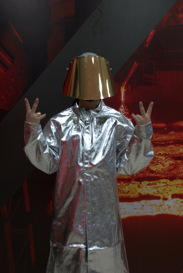 Собственно, поэтому плавильщики обмундированы в специальную защитную одежду. При желании после экскурсии ее можно примерить