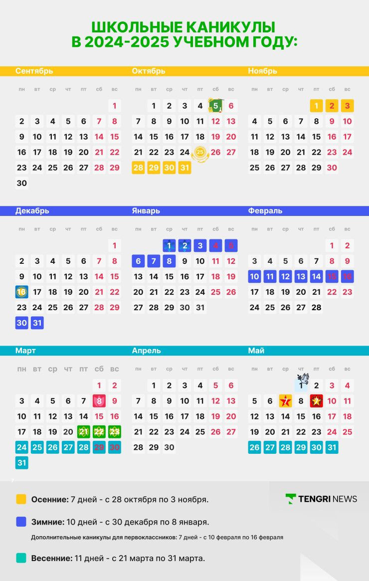 К слову, в декабре 2024 года казахстанцы с пятидневной рабочей неделей отдохнут 10 дней и еще 11 дней – в первом месяце нового 2025 года. Ранее мы подготовили удобный календарь праздников и выходных на декабрь и январь, чтобы вы заранее могли спланировать свой отдых и возможные поездки.