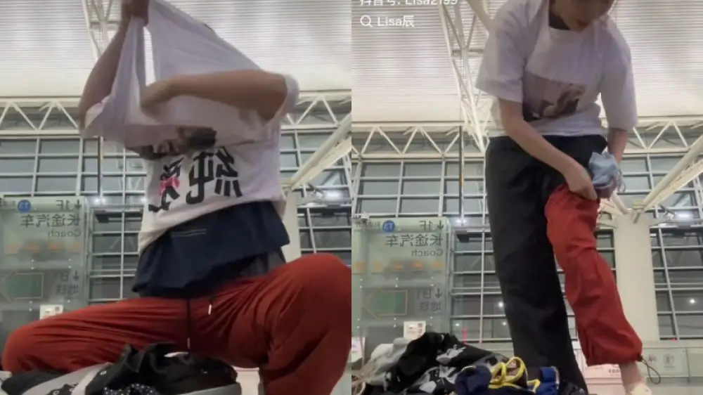 Туристка решила не переплачивать за багаж и надела 2 кг одежды Фото: Asia One / кадры из видео