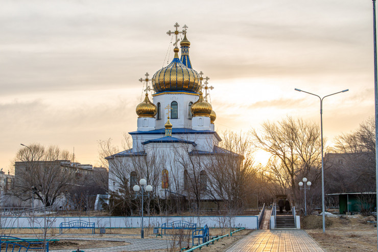 В апреле 1992 года в приспособленном помещении появился первый православный храм. Удивительный и невероятный факт, если смотреть на него из реалий советского времени. Встречавший нас Михаил служит здесь протоиереем. Оказалось, что и космонавтам, военным, летчикам, специалистам космодрома и другим жителям города тоже нужны молитва, исповедь и причастие. К 2000-му прежнее помещение оказалось слишком тесным.