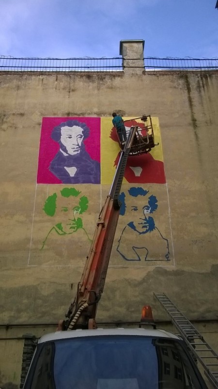 А работу "Пушкин в поп-арте" Паша Кас нарисовал 2 года назад на Итальянской улице Петербурга, на стене дома №37. Портрет Пушкина представлен в стиле знаменитой работы "Мэрилин" американского художника и дизайнера Энди Уорхола, которую он создал в августе 1962 года.