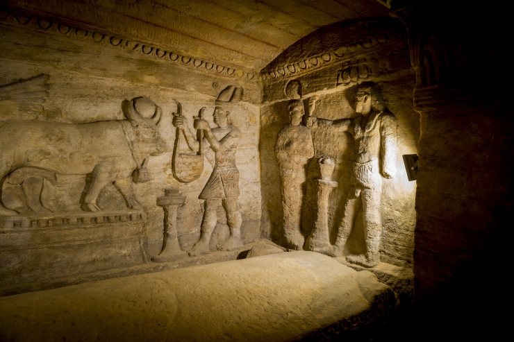 Гробница имеет множество саркофагов с мумиями, погребенными по египетским канонам и многочисленные ниши с останками тех, кто был кремирован по греческому и римскому обряду.