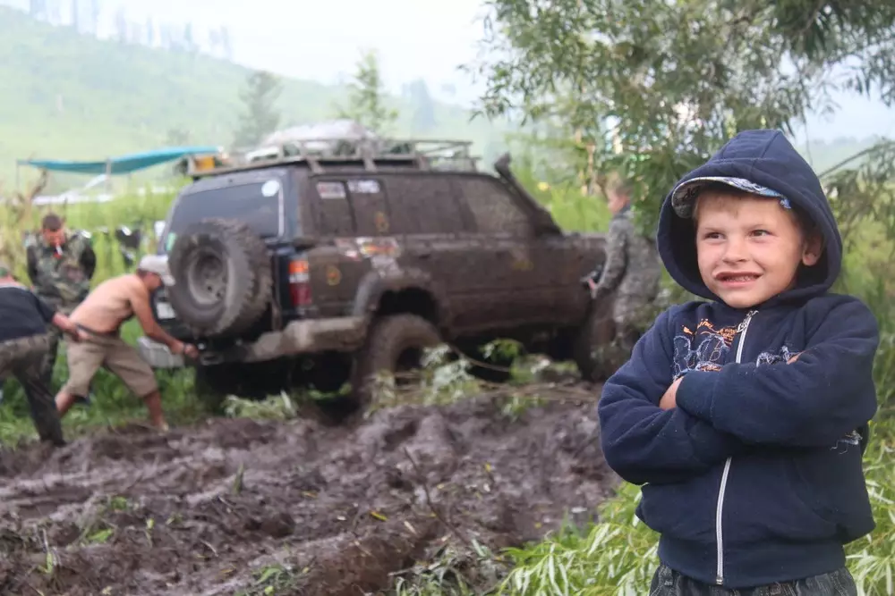 По возвращении в лагерь участников фестиваля ждала развлекательная программа: спортивные конкурсы по армрестлингу, тасканию на скорость бревен, перетягиванию каната и многое другое. Маленькие участники фестиваля тоже не скучали. Они сочинили целую сказку про маленького Джипика и даже инсценировали ее: один из "актеров" сыграл джип, другой - овраг. По шуточному сюжету, бабушка собрала все, что было у нее в сарае, "по сусекам поскребла" и собрала целый внедорожник - маленький Джипик, который затем отправился гулять по горам и встретил там других сказочных персонажей.