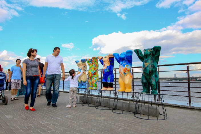 Казахстанский мишка представлен на международной художественной выставке The Minis United Buddy Bears в Казани, сообщает корреспондент Tengrinews.kz.