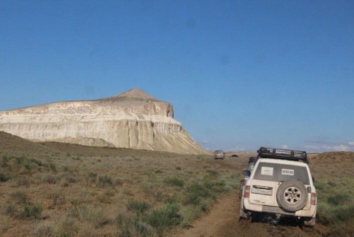 В Казахстане продолжается экспедиция по сакральным местам страны "Киелi Қазақстан", организованная Казахстанским национальным географическим обществом (QazaqGeography). Журналист Tengrinews.kz в составе экспедиции передает с места событий. Колонна из семи внедорожников с 25 членами экипажа на борту добралась до кладбища кораблей на останках Аральского моря и загадочной горы в форме льва Шеркала.
