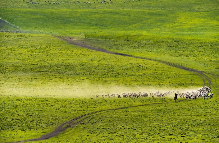 Немецкий фотограф запечатлел момент, когда кочевники перегоняли скот на тучные летние пастбища. Как сообщает китайское издание People's Daily Online, в 2012 году жители уезда Текес приступили к реализации программы по улучшению племенного животноводства.