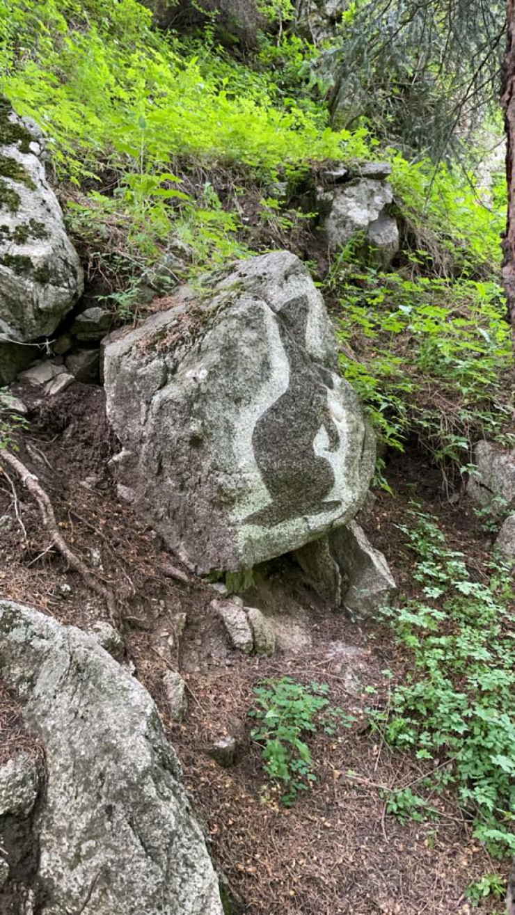Посетитель, пройдя все расстояние тропы, встречает на своем пути петроглифы краснокнижных животных, таких как снежный барс, тянь-шаньский бурый медведь, рысь, куница и другие. Каменные гравюры расположены в разных местах: на скале, на родниках, на высокой и низкой поверхности тропы.