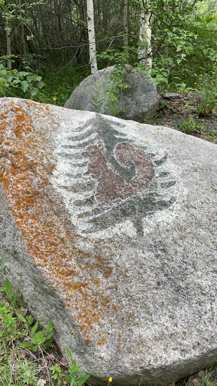 Известный казахстанский художник Санжар Жубанов выбил на камнях и скалах вдоль тропы изображения животных, занесенных в Красную книгу Казахстана. На гравировку камней ушло около 4,5-5 месяцев.